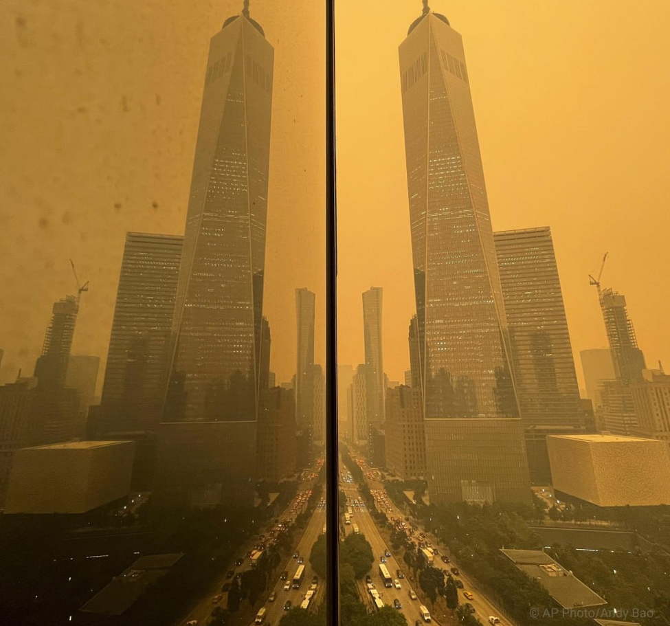 وقد خيمت على نيويورك سحابة ضباب دخاني يميل لونها إلى البرتقالي حاجبة ناطحات السحاب، كما أجبرت السكان على وضع الكمامات.