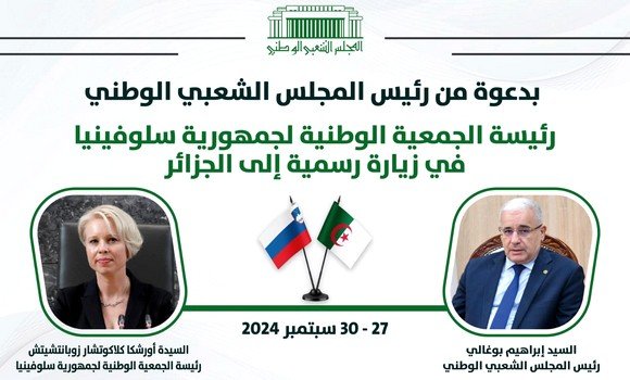تقوم رئيسة الجمعية الوطنية لجمهورية سلوفينيا، أورشكا كلاكوتشار زوبانتشيتش، بزيارة رسمية إلى الجزائر في الفترة الممتدة من 27 إلى 30 سبتمبر، وذلك بدعوة من رئيس المجلس الشعبي الوطني، إبراهيم بوغالي، حسب ما أورده اليوم الخميس بيان للمجلس.