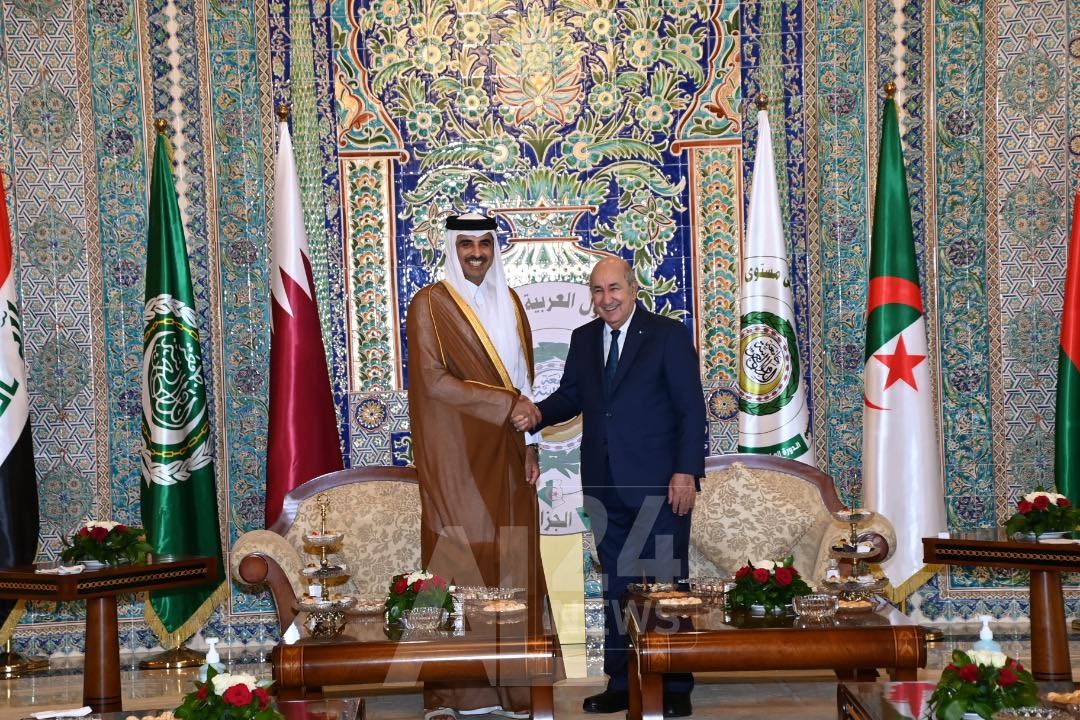 المجيد تبون, رفقة أمير دولة قطر, الشيخ تميم بن حمد آل ثاني, أمس الثلاثاء بالجزائر العاصمة, مشروع بناء المستشفى الجزائري-القطري-الألماني, وكذا مشروع توسعة مركب الشركة الجزائرية-القطرية للحديد والصلب بمنطقة بلارة, بولاية جيجل، على هامش انعقاد الدورة 31 لقمة الجامعة العربية.
