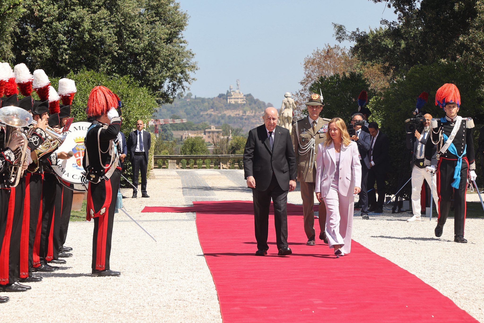 يذكر أن الرئيس الجزائري كان قد خُص، أمس الأربعاء، باستقبال رسمي من قبل نظيره الإيطالي، سيرجيو ماتاريلا، بالقصر الرئاسي “كورينالي”، كما أجرى الطرفان محادثات ثنائية توسعت لاحقا لوفدي البلدين.