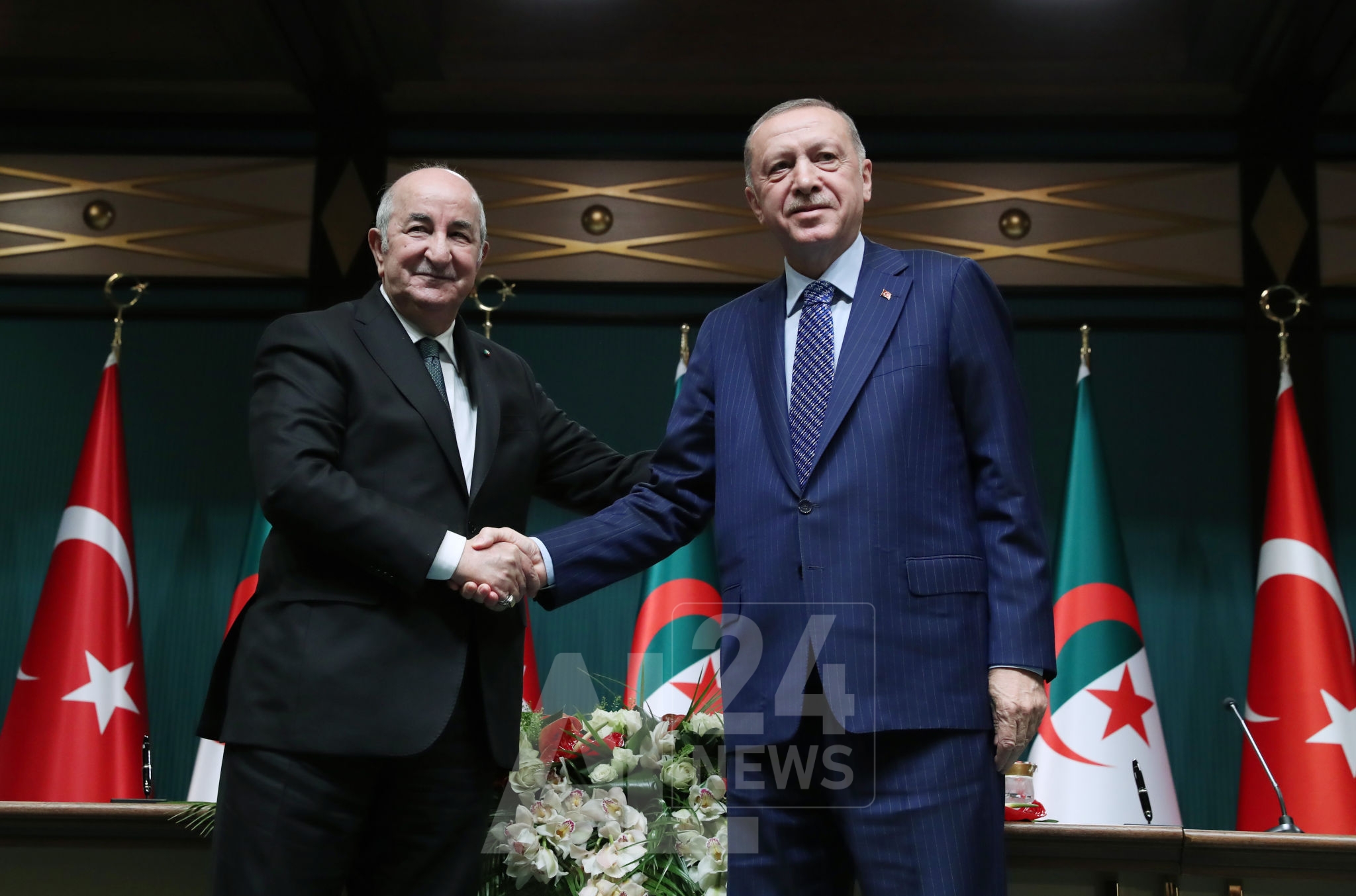 وفي اليوم الثاني من الزيارة، وبعد استقبال رسمي حار، كانت للرئيس تبون محادثات مع أخيه رجب طيب أردوغان، رئيس جمهورية تركيا الشقيقة، محادثات وصفها بـ “الثرية والعميقة” وبـ “الايجابية لفائدة البلدين والشعبين”، والتي جاءت لتعزز علاقات ثنائية استراتيجية متجذرة في التاريخ، في الوقت الذي يحتفل فيه البلدان بالذكرى الـ 60 لإقامة العلاقات الدبلوماسية بينهما.