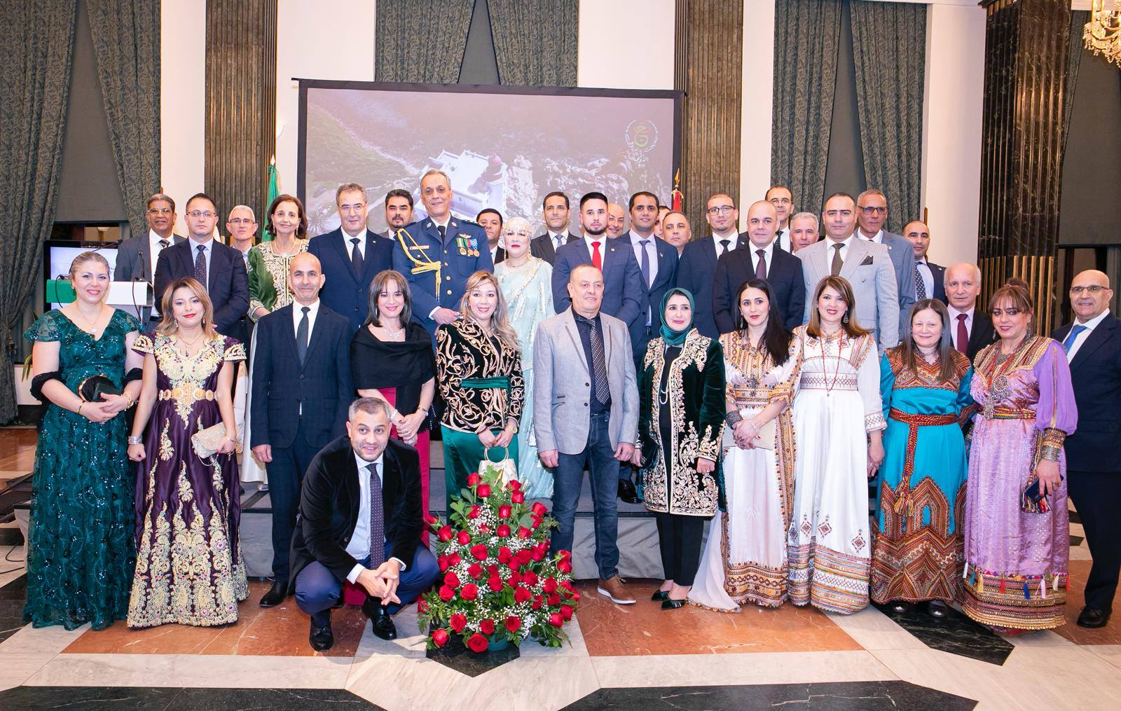 وتحت إشراف السفير الجزائري عبد الفتاح دغموم، شهدت الاحتفالية حضور ممثلي الهيئات الحكومية والرسمية الإسبانية ورؤساء البعثات الدبلوماسية وممثلي المنظمات الدولية والإقليمية المعتمدة بمملكة إسبانيا، إلى جانب أعضاء الجالية الوطنية وكذا أصدقاء الجزائر بهذا البلد.