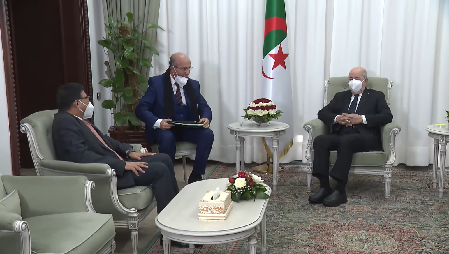 وفي تصريح للصحافة عقب استقباله من قبل الرئيس الجزائري، قال السفير الباكستاني المنتهية مهامه، أنه تم التطرق الى “مواضيع عدة من بينها القضايا الاقليمية بالمنطقة”.