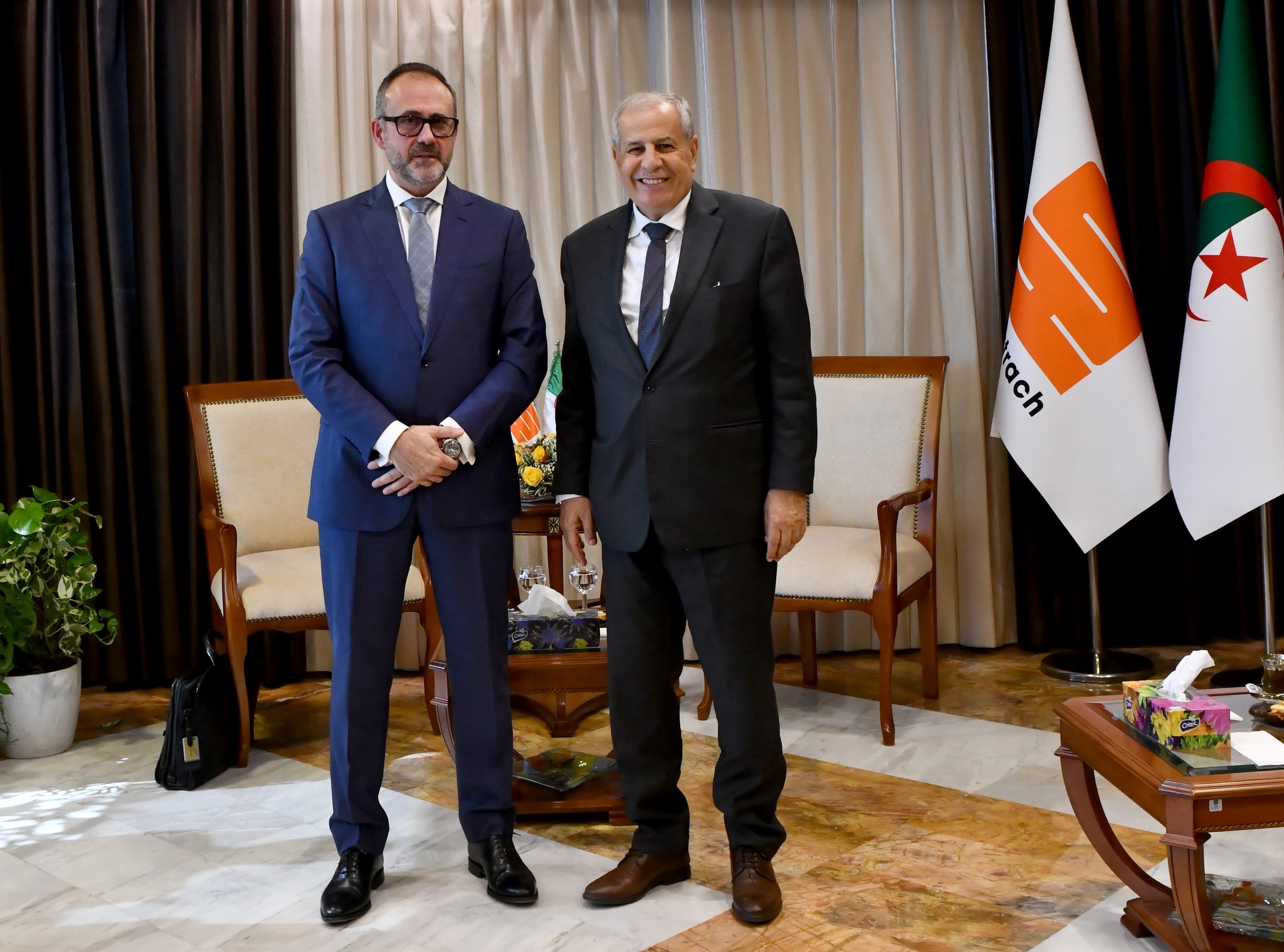 تحادث الرئيس المدير العام لمجمّع سوناطراك الجزائري، رشيد حشيشي، اليوم الأحد، مع رئيس شركة “جون كراين” البريطانية، روبن ألفاريز، بشأن فرص تجسيد شراكة مستقبلية وسبل تجسيدها في الواقع.