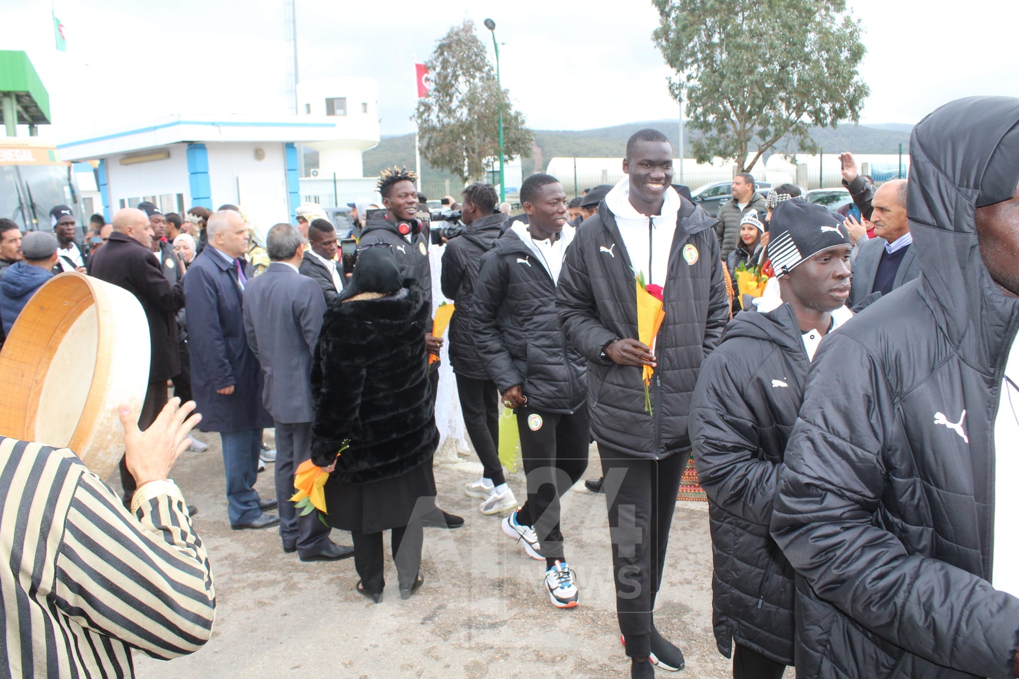 وحلّ الوفد السينغالي الذي يضم 23 شخصا بالمعبر الحدودي البري ببلدية العيون الحدودية، قبل أن يستقل حافلة ستنقله إلى ولاية عنابة التي ستحتضن جزءا من منافسات هذه البطولة.