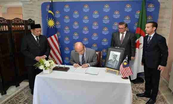 وقع كاتب الدولة لدى وزير ا الخارجية الجزائري المكلف بالجالية الوطنية بالخارج، سفيان شايب، باسم الحكومة الجزائرية، اليوم الخميس، بمقر سفارة ماليزيا بالجزائر، على سجل التعازي إثر وفاة رئيس وزراء ماليزيا الأسبق عبد الله أحمد بدوي.