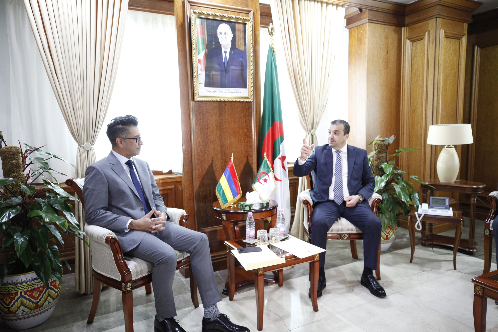 وفي مستهل اللقاء، الذي جرى بحضور اطارات سامية من الوزارة، “سلم الوزير الموريشي رسالة خطية موجهة إلى رئيس الجمهورية، السيد عبد المجيد تبون، من الوزير الأول لجمهورية موريشيوس، السيد نافين رامغولام، عبر فيها عن أطيب تحياته الأخوية، وتمنياته الصادقة للجزائر بدوام التقدم والازدهار”.