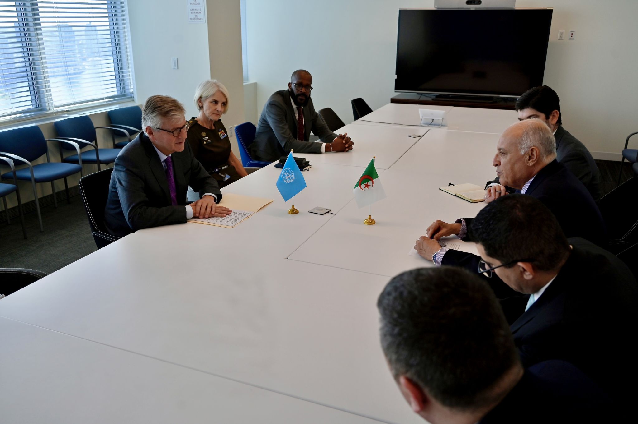 تحادث وزير الدولة وزير الخارجية الجزائري، أحمد عطاف، اليوم الأحد بنيويورك، مع وكيل الأمين العام للأمم المتّحدة المكلّف بعمليّات السلام، جون بيار لاكروا.
