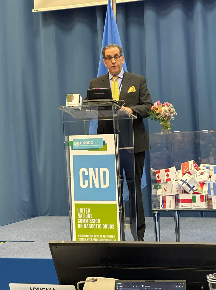 واسهاما منها في مبادرة “التعهد من أجل العمل”، والتي تم اطلاقها خلال الدورة الجارية للجنة المخدرات، قصد الإسراع في تنفيذ الالتزامات المشتركة الدولية الرامية للتصدي لمشكلة المخدرات العالمية، أبلغ المندوب الدائم، “بتعهد الجزائر بإنشاء أربعة مراكز جهوية عصرية لعلاج الإدمان على المخدرات على مستوى التراب الوطني”.