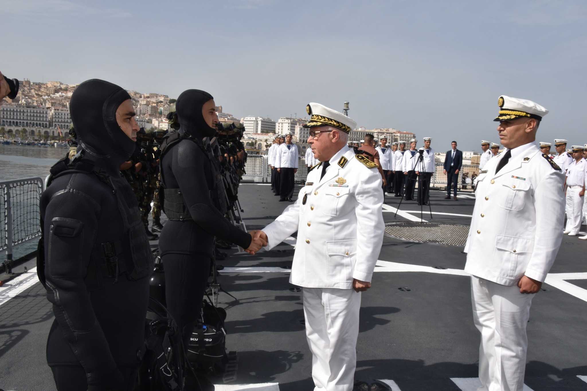 وجاء في البيان: “في إطار التعاون العسكري الثنائي بين القوات البحرية الجزائرية ونظيرتها البحرية الملكية البريطانية، أشرف قائد القوات البحرية، اللواء محفوظ بن مداح، اليوم الاثنين 13 أكتوبر 2025 على مراسم تفتيش الغراب متعدد المهام “الظافر” رقم المتن 920، بالرصيف الشمالي للأميرالية بالقاعدة البحرية الجزائر بالناحية العسكرية الأولى، وهذا قبل ذهابه للمشاركة في التمرينين البحريين المشتركين، خلال الفترة الممتدة من 19 إلى 24 أكتوبر 2025، بالمياه الإقليمية البريطانية”.