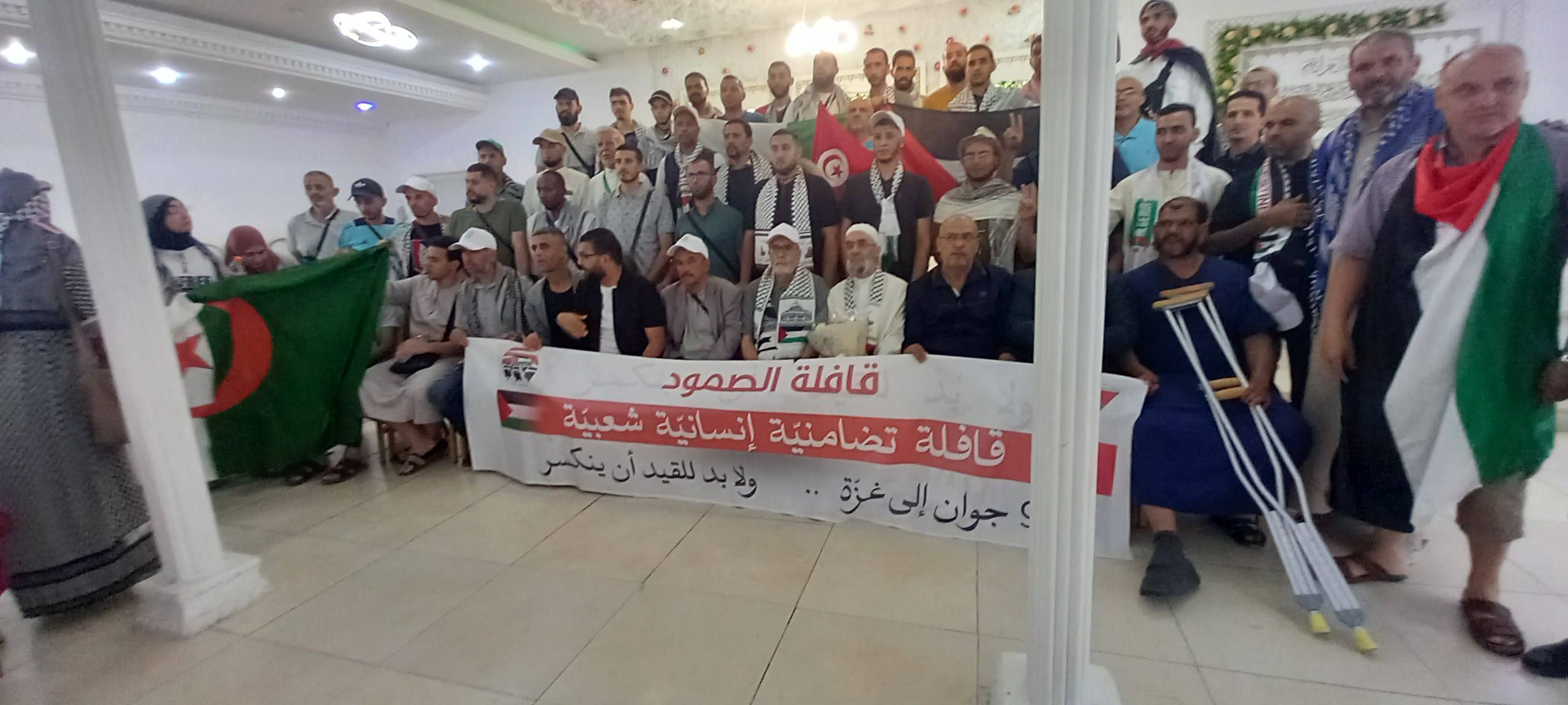 وكانت نقطة الانطلاقة الثانية لقافلة “صمود” اليوم من تونس، وسط أهازيج نصرة وتشجيع وبشعار “لابد للقيد أن ينكسر”، وقد زينتها أعلام الدول المشاركة إلى جانب العلم الفلسطيني.