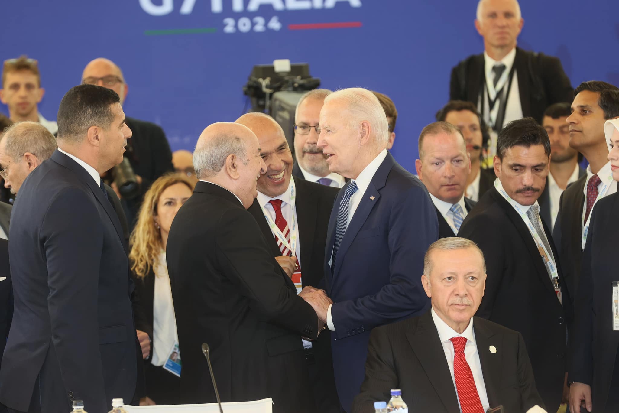 تحادث الرئيس الجزائري، عبد المجيد تبون، اليوم الجمعة بمدينة باري الإيطالية، مع قادة كبرى دول العالم على هامش قمة مجموعة السبع لكبار المصنعين في العالم، وذلك قبل انطلاقها الرسمي.