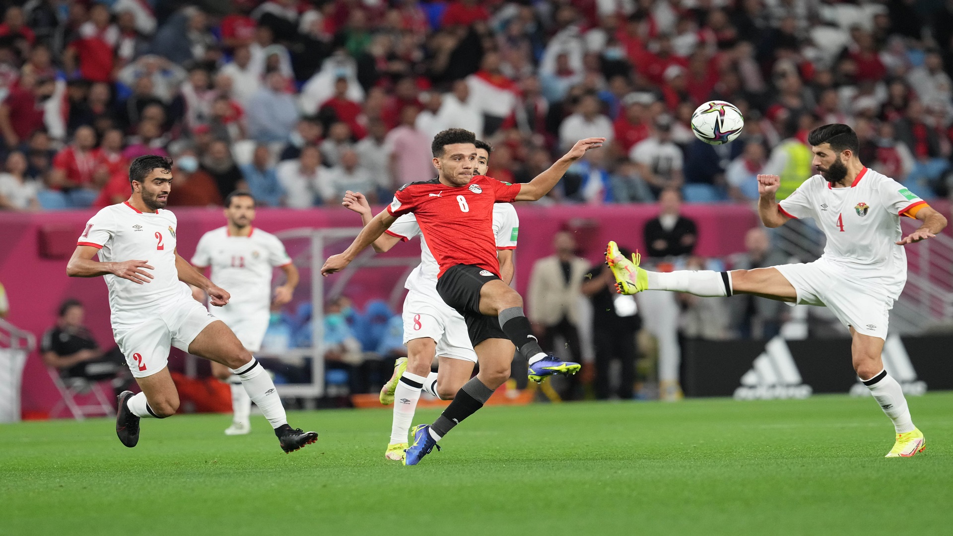 فاز المنتخب المصري على نظيره الأردني، السبت، بثلاثة أهداف مقابل هدف، ليتأهل إلى نصف نهائي كأس العرب 2021 المقامة في قطر