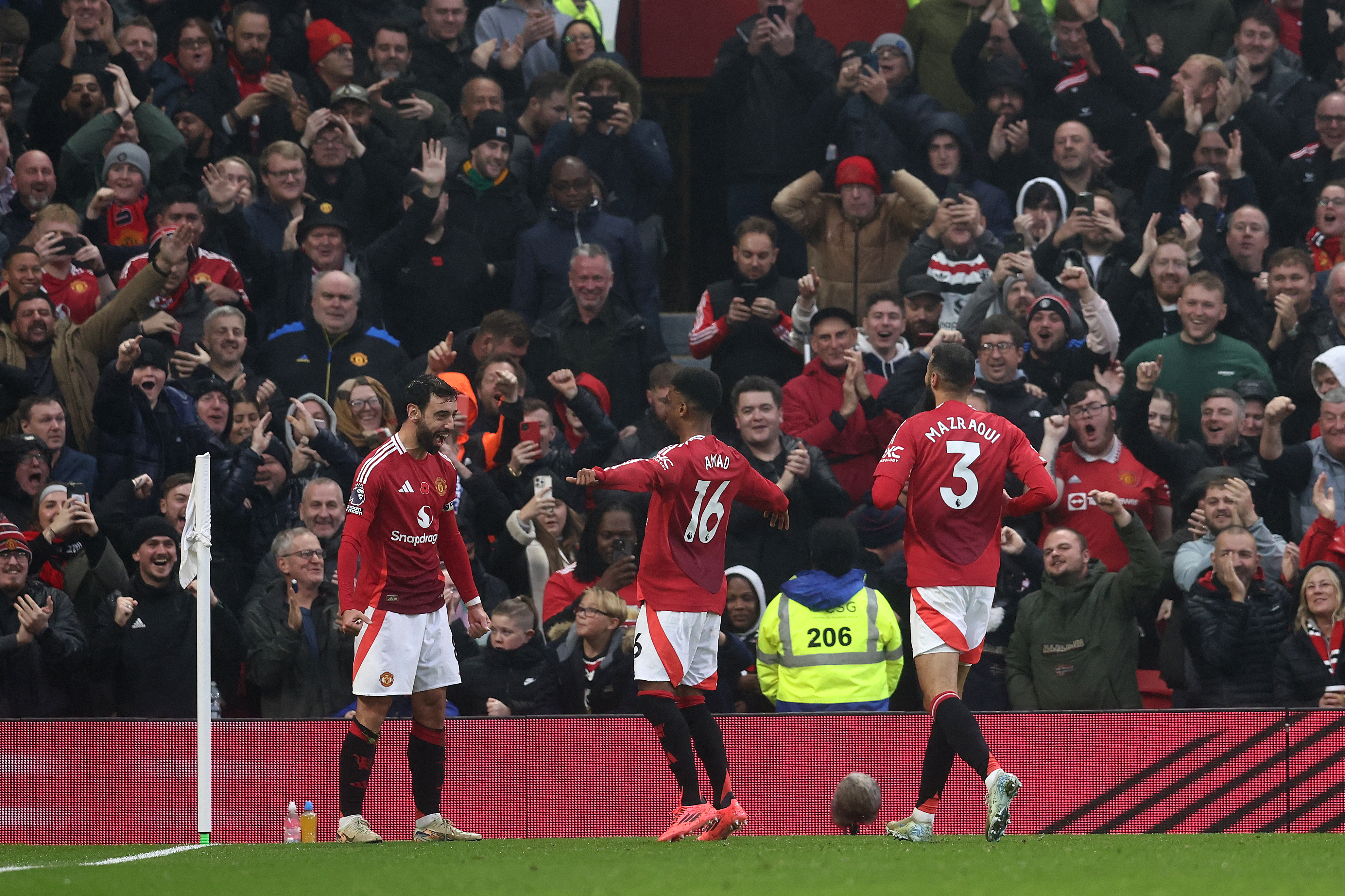 وأحرز هدفي أصحاب الأرض في الشوط الأول، كل من البرتغالي برونو فيرنانديـز، الذي احتفل بالمشاركة في لقائه الـ 250 مع “الشياطيـن الحمر”، وفيكتور كريستيانسن ضد مرماه.