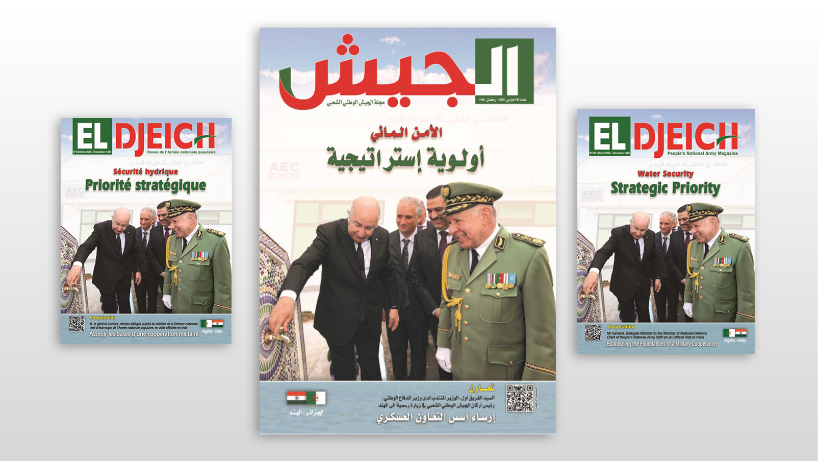 وأضافت المجلة: “مسؤولية يتطلب الوفاء بها العمل دون هوادة، وبكل إخلاص وعزيمة، للحفاظ على بلادنا مزدهرة وقوية وسيّدة، ومواصلة مسار بناء الجزائر الجديدة المنتصرة، التي تعيش على وقع إنجازات كبرى ومشاريع إستراتيجية، ومنها تلك التي أشرف على تدشينها رئيس الجمهورية السيّد عبد المجيد تبون نهاية الشهر المنصرم، والمتمثلة في مـحطات تحلية مياه البحر التي دخلت حيز الخدمة، في خطوة عملاقة نحو تعزيز أمننا المائي وتأمين احتياجات المواطنين من المياه الصالحة للشرب”.