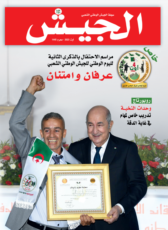 وعادت المجلة في افتتاحيتها إلى “اليوم الوطني للجيش” الذي أحيته الجزائر في الرابع أغسطس الجاري، وهو التاريخ المخلد لتحوير جيش التحرير الوطني إلى الجيش الوطني الشعبي، معتبرة أن إقرار رئيس الجمهورية لهذا اليوم ضمن الأيام الخالدة في تاريخ الأمة هو “عرفان للدور المحوري للمؤسسة العسكرية في مسيرة بناء الوطن والحفاظ على وحدته والدفاع عن سيادته”.