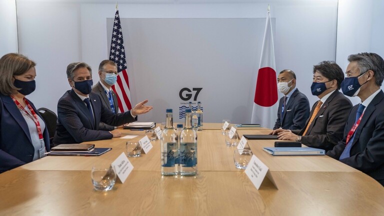 اجرى وزير الخارجية الامريكي انتوني بلينكن محادثات مع نظيره الياباتي هاياشي على هامش اجتماع لوزراء خارجية دول مجموعة السبع في مدينة ليفربول البريطانية