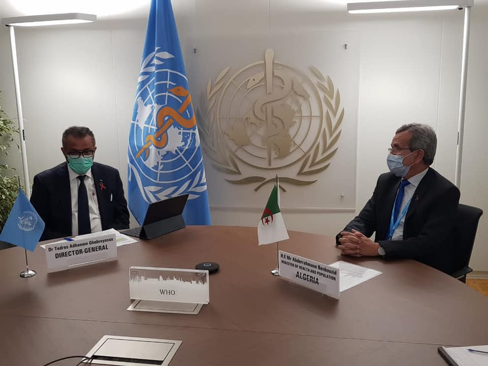 على هامش الدورة الاستثنائية لجمعية الصحة العالمية، المنعقدة بمقر منظمة الصحة العالمية، بجنيف من 29 نوفمبر إلى 01 ديسمبر، استقبل المدير العام لمنظمة الصحة العالمية، الدكتور تيدروس أدحانوم غيبرييسوس، وزير الصحة الجزائري، البروفيسور عبد الرحمن بن بوزيد، يوم الأربعاء، بمقر المنظمة.