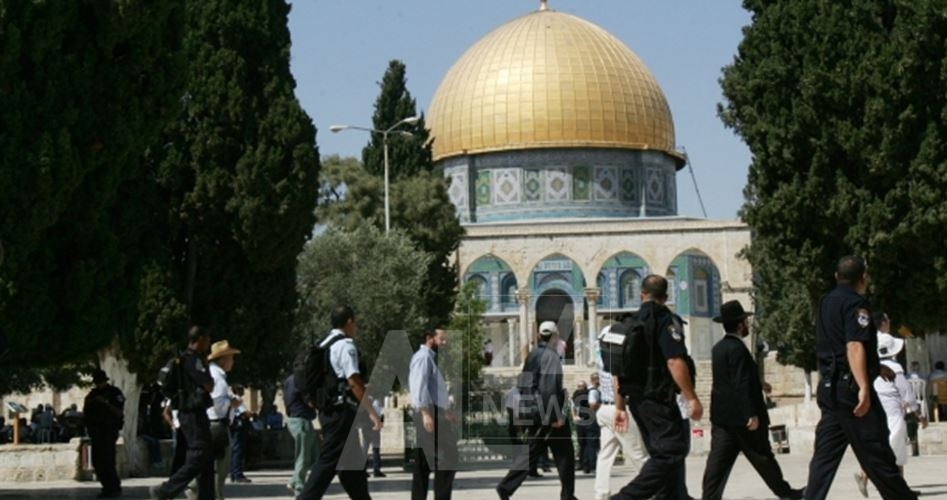 اقتحم مستوطنون، اليوم الأحد، مجددا باحات المسجد الأقصى المبارك في القدس المحتلة تحت حماية مشددة من قوات الاحتلال الصهيوني وذلك في إطار مساعي الاحتلال الهادفة إلى فرض التقسيم الزماني والمكاني للمسجد وفرض الاحتلال كأمر واقع.