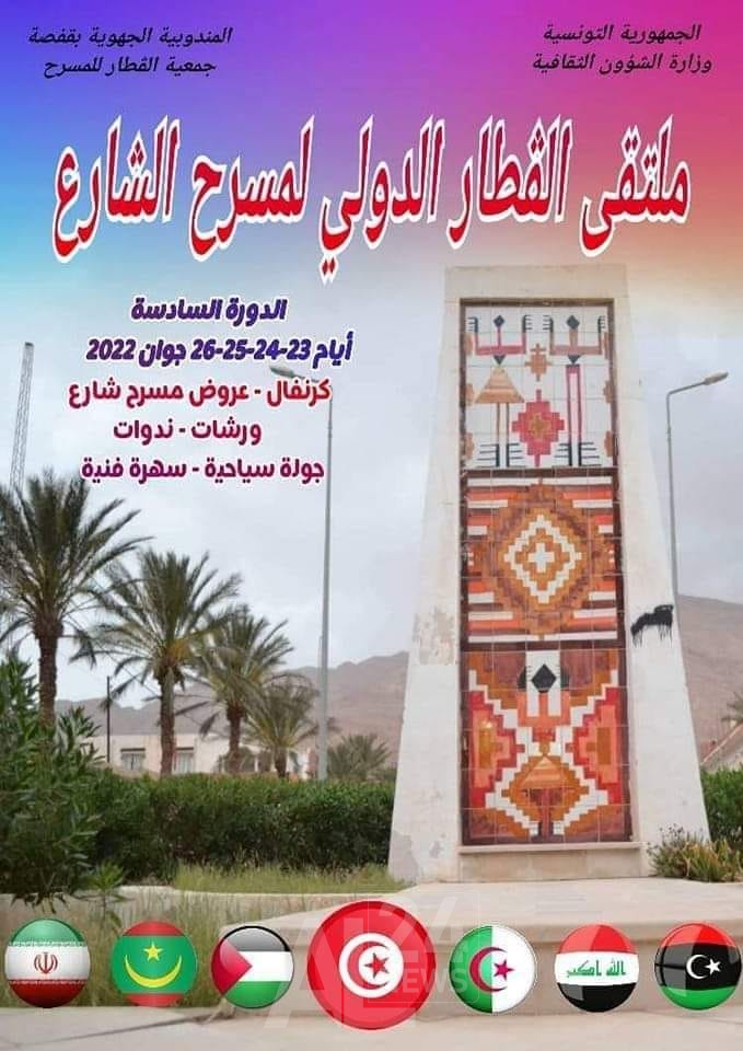 “الملتقى الدولي لمسرح الشارع”، تنطلق دورته السادسة في مدينة القطار (375 جنوب غرب تونس العاصمة) مساء الخميس، الثالث والعشرين من الشهر الجاري، ويتواصل لمدة أربعة ايام.