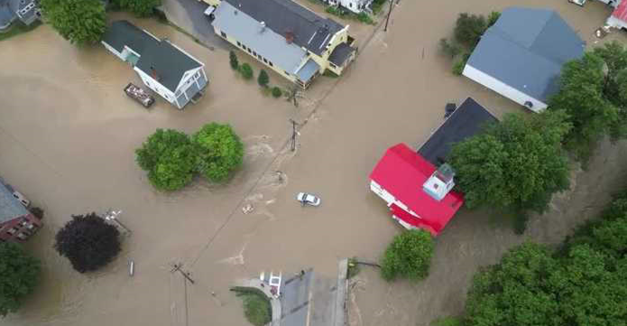 ونشر مكتب المأمور في مقاطعة وودبري المجاورة مقطع فيديو لطائرة مسيرة على موقع التواصل الاجتماعي (فيسبوك) يظهر تجاوز مياه النهر للضفة وغمرها لليابسة.