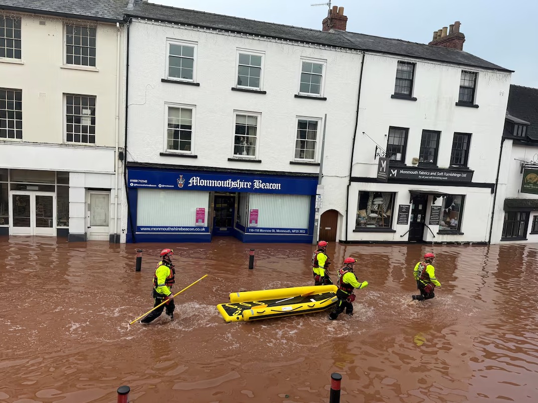 من جانب آخر، شهدت بلدة مونماوث والمناطق المجاورة في جنوب شرق ويلز ببريطانيا، فيضانات عارمة.