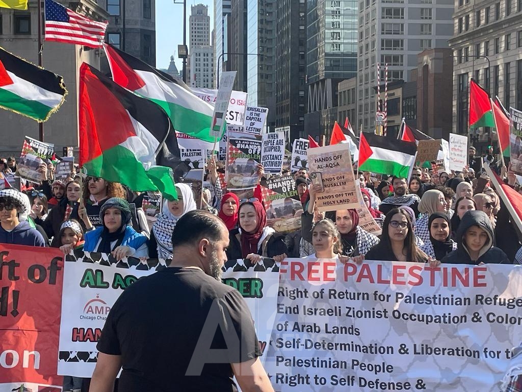 ودعا المتحدث باسم “التحالف من أجل العدالة في فلسطين” أسامة ناصر، في المسيرة التي انطلقت في شيكاغو المجتمع الدولي، وعلى رأسها حكومة الولايات المتحدة إلى الابتعاد عن سياسة ازدواجية المعايير، والضغط على الاحتلال الصهيوني لوقف جرائم الحرب ضد المواطنين الفلسطينيين، وفرض العقوبات عليه.