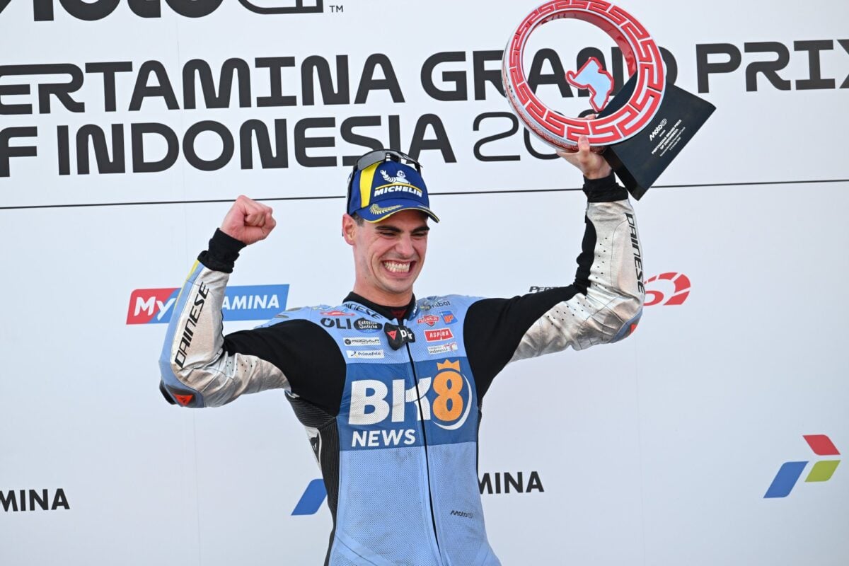 حقق المتسابق الإسباني الصاعد، فيرمين ألديغير، أول فوز في مسيرته ببطولة العالم للدراجات النارية، بعدما توّج بسباق جائزة إندونيسيا الكبرى، اليوم الأحد.