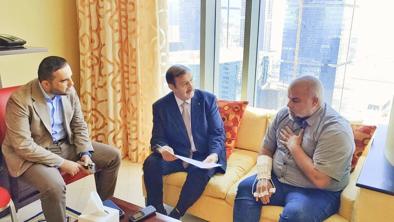 التقى السفير الجزائري بقطر صالح عطية، اليوم، الإعلامي وائل الدحدوح بمقر إقامته بالدوحة حيث نقل له تحيات الرئيس الجزائري عبد المجيد تبون والشعب الجزائري، وسلم له بهذه المناسبة النسخة الأصلية لرسالة التعزية التي بعثها الرئيس تبون على إثر إستشهاد نجله الصحفي حمزة وائل الدحدوح.