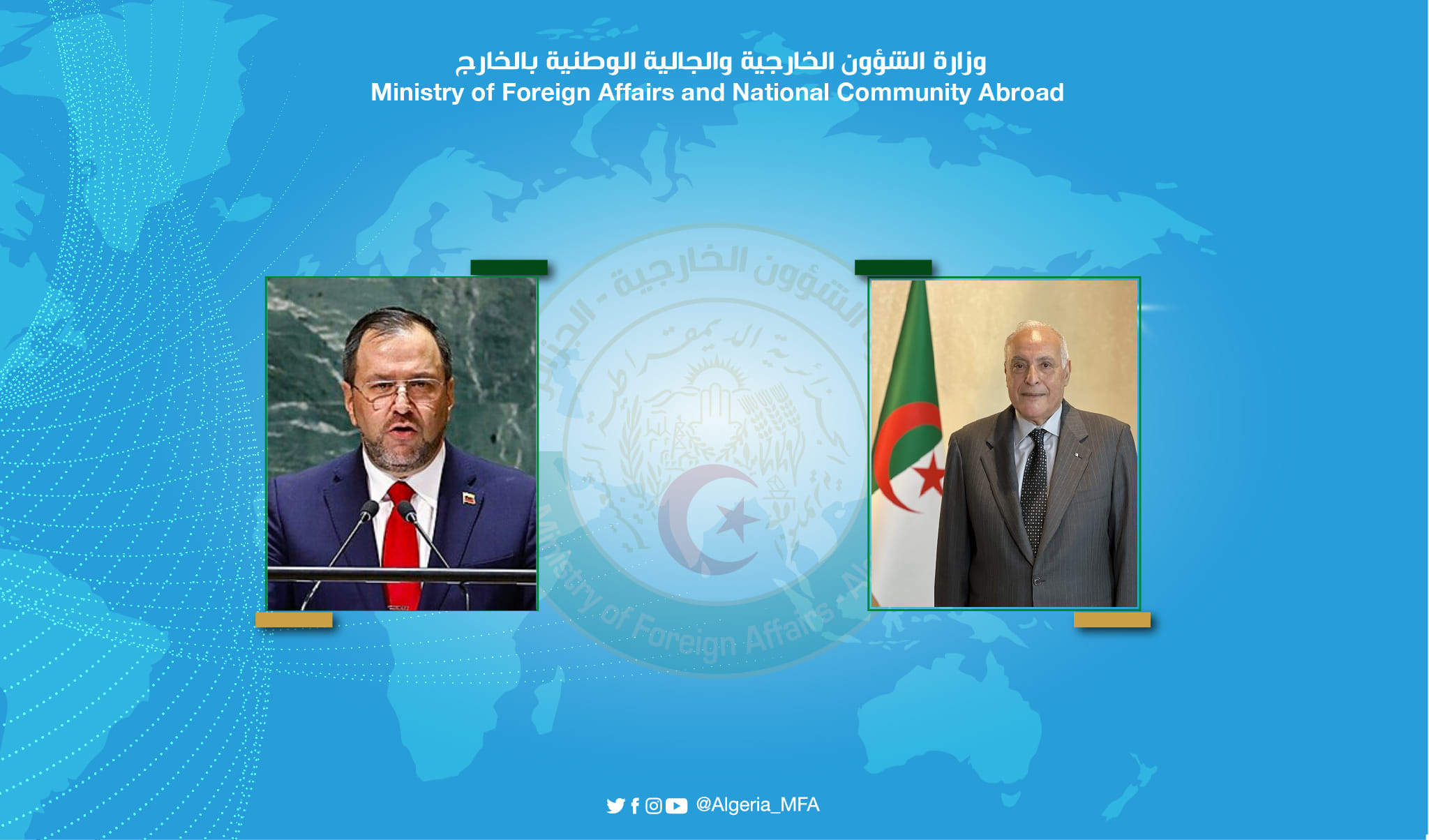 وزير الخارجية الجزائري يتلقى اتصالا هاتفيا من وزير السلطة الشعبية للعلاقات الخارجية الفنزويلي
