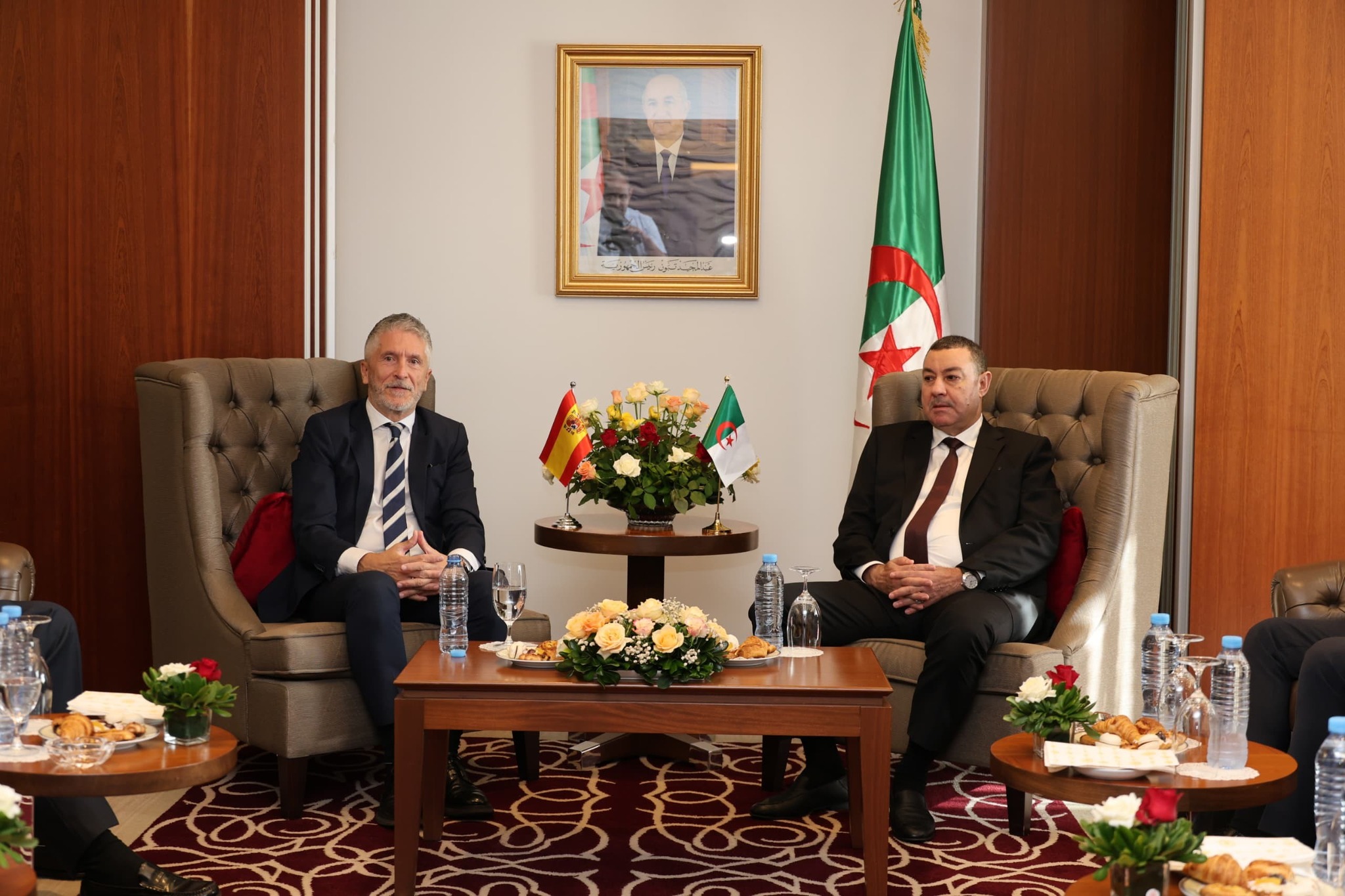 وخلال اجتماع ثنائي مع وزير الداخلية والجماعات المحلية والنقل الجزائري، السعيد سعيود، بالجزائر العاصمة، أشاد فرناندو غراندي مارلاسكا بالعلاقات الدبلوماسية بين البلدين، مؤكدا على نوعية العلاقات الثنائية الممتازة وفعالية التنسيق بين القطاعين. وفي السياق، أشاد الوزير الإسباني بجهود السلطات الجزائرية للتخفيف من ظاهرة الهجرة غير الشرعية واحترام حقوق الإنسان ومكافحة الشبكات الإجرامية.