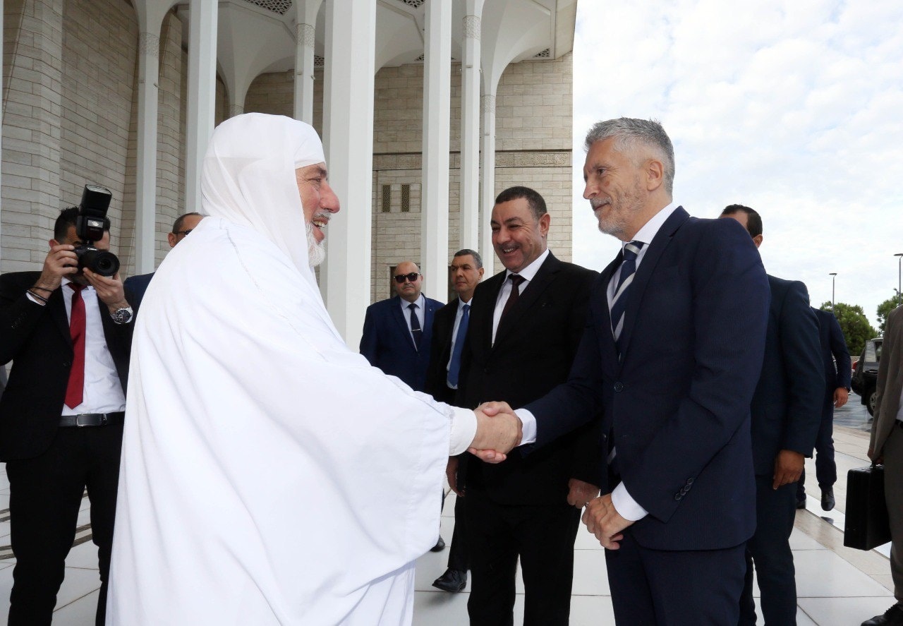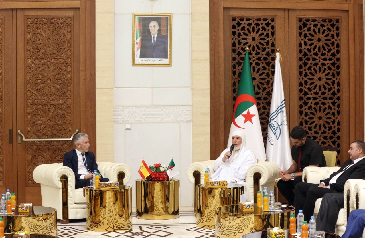 استقبل عميد جامع الجزائر، محمد المأمون القاسمي الحسني، الاثنين، وزير الداخلية الإسباني، فرناندو غراندي مارلاسكا غوميز، والوفد المرافق له، مصحوبا بوزير الداخلية والجماعات المحلية والنقل، السعيد سعيود، وإطارات من الوزارة، حسب ما أفاد به بيان لعمادة الجامع.