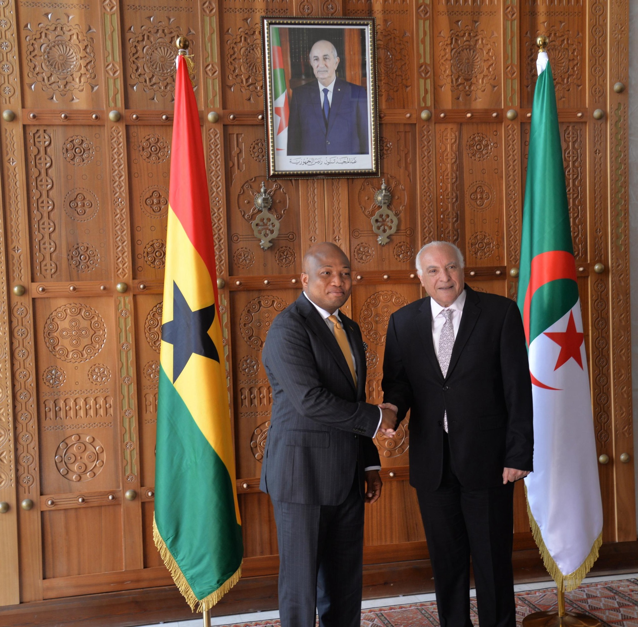 وشكل اللقاء -حسب البيان – “فرصة لاستعراض العلاقات التاريخية والمتميزة التي تجمع بين الجزائر وغانا في مختلف أبعادها ومحاورها، وكذا بحث السبل الكفيلة بإضفاء المزيد من الزخم عليها، لا سيما في الشق الاقتصادي، وذلك بما يتماشى مع الإمكانيات التي يتوفر عليها البلدان ويستجيب لتطلعاتهما التنموية الطموحة”.