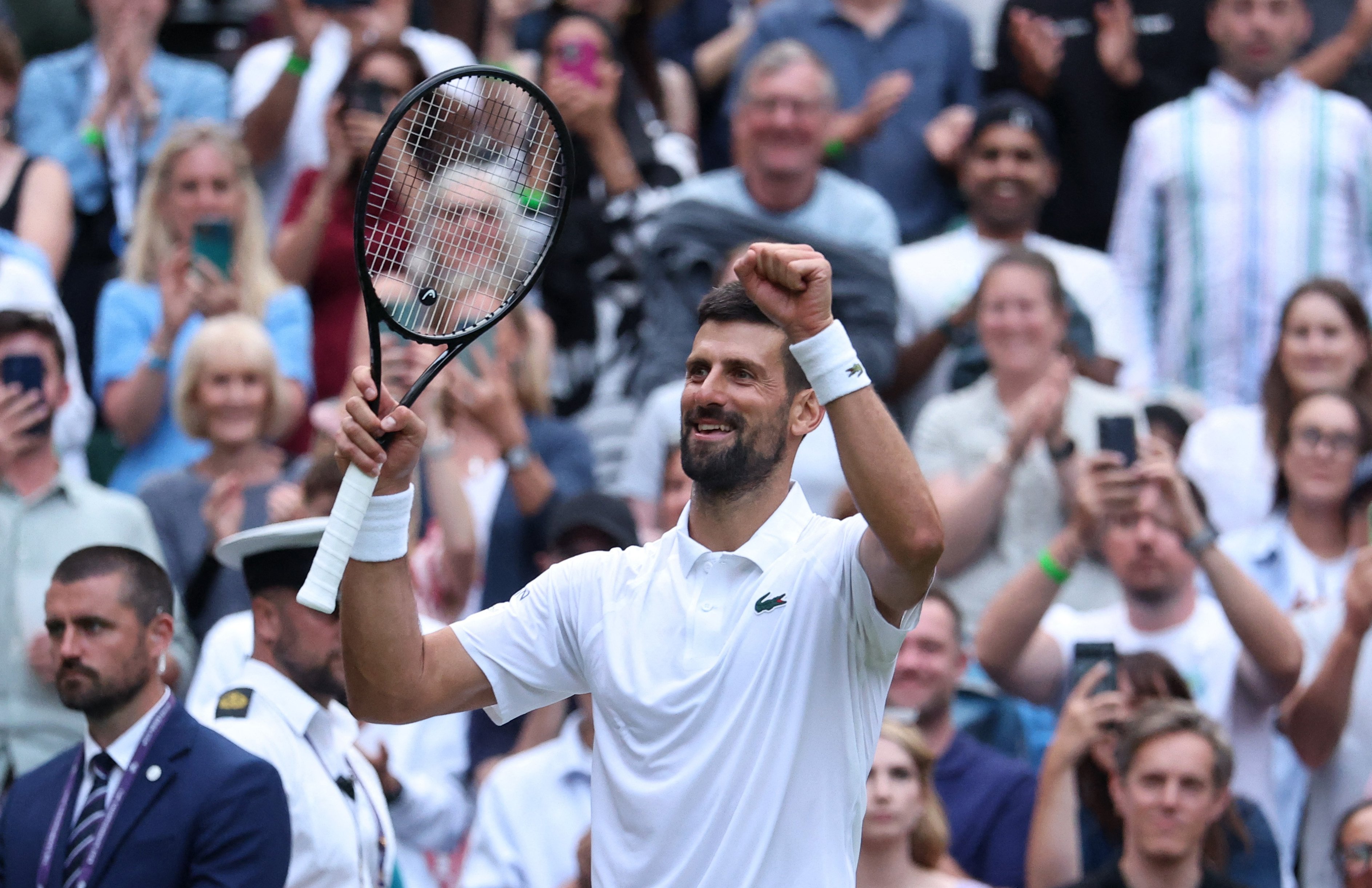 وبعد أداء مذهل للمصنّف السادس، أصبح دجوكوفيتش ثالث لاعب يحقق 100 انتصار في ملاعب نادي عموم إنجلترا، بعد الفائزة باللقب تسع مرات مارتينا نافراتيلوفا، والمتوّج ثماني مرات روجر فيدرر.