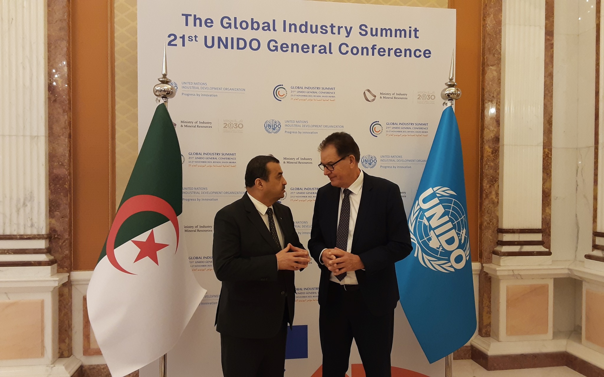 وخلال محادثات جمعته مع وزير الدولة، وزير المحروقات والمناجم الجزائري، محمد عرقاب، على هامش المؤتمر العام الحادي والعشرين للمنظمة المنعقد بالعاصمة السعودية الرياض، أكد المدير العام لـ “يونيدو”، غيرد مولر، أن المنظمة الأممية على أتم الاستعداد لتطوير علاقات التعاون مع الجزائر في العديد من المجالات ذات الاهتمام المشترك، وأشاد بالمشاركة الفعّالة للجزائر في هذا الحدث الدولي، مذكّرا بالنتائج الإيجابية للزيارة التي قام بها إلى الجزائر جوان 2024، والتي شكلت خطوة مهمة نحو تعزيز التعاون بين الطرفين، حيث التقى خلالها مسؤولين سامين في الدولة، وعلى رأسهم رئيس الجمهورية، عبد المجيد تبون، وهي الزيارة التي أسست لمستويات جديدة من الشراكة في التنمية الصناعية، إدماج الشباب، ودعم المؤسسات الناشئة.