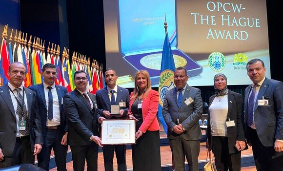 The prize awarding ceremony took place in the presence of delegates and representatives of OPCW Member States, under the presidency of the session’s president, the organization’s Director General, Salima Abdelhak, the interim president of its Executive Council, and the Mayor of The Hague.