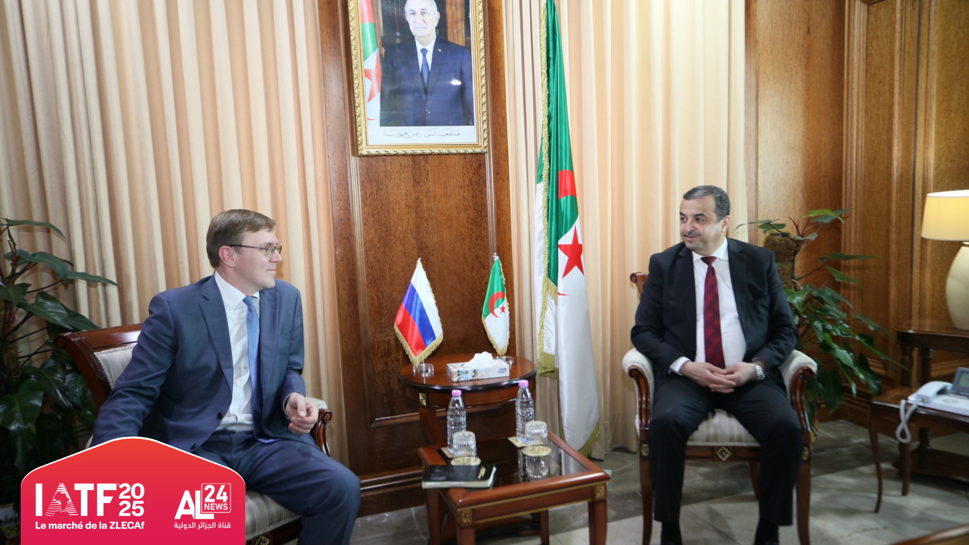 Algerian Minister of State, Minister of Energy, Mining, and Renewable Energies, Mohamed Arkab, received Russian Deputy Minister of Energy, Roman Marshavin, and his accompanying delegation at the ministry’s headquarters, as part of their participation in the fourth edition of the Intra-African Trade Fair (IATF 2025) held in Algiers. The meeting was attended by the Ambassador of the Russian Federation to Algeria, Secretary of State in charge of Mining Karima Bekir Tafer, Secretary of State in charge of Renewable Energies Noureddine Yassa, as well as senior officials from the ministry and the Sonatrach Group.