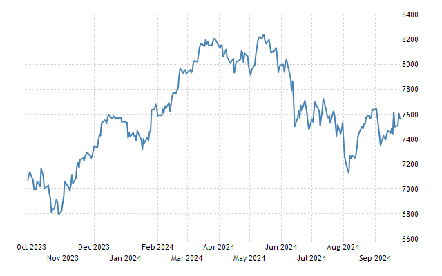 The CAC 40 surged 1.6% to 7,687 on Thursday, marking its highest level in a month and mirroring a global stock rally fueled by renewed optimism surrounding China’s stimulus package. Reports indicate that Chinese authorities are considering additional measures, including a potential injection of up to CNY 1 trillion into the country’s largest state banks.