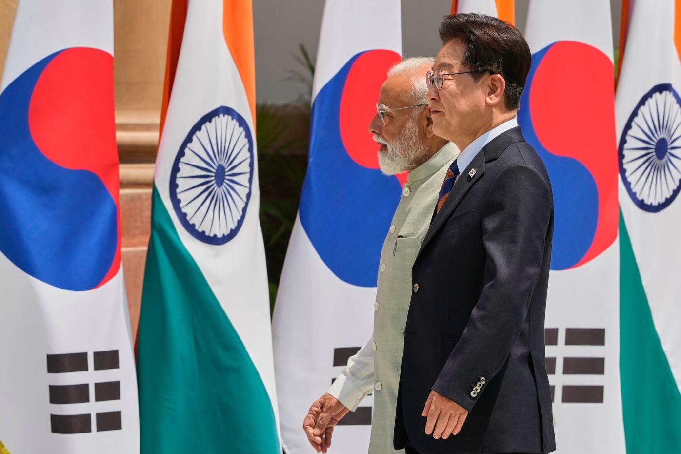 South Korean President Lee Jae Myung met Indian Prime Minister Narendra Modi in New Delhi on Monday, with both leaders pledging to nearly double bilateral trade to deepen economic and strategic ties.
