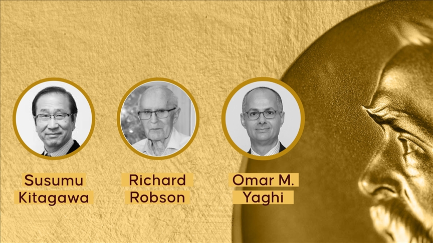 The laureates are Susumu Kitagawa of Kyoto University (Japan), Richard Robson of the University of Melbourne (Australia), and Omar M. Yaghi of the University of California, Berkeley (United States).