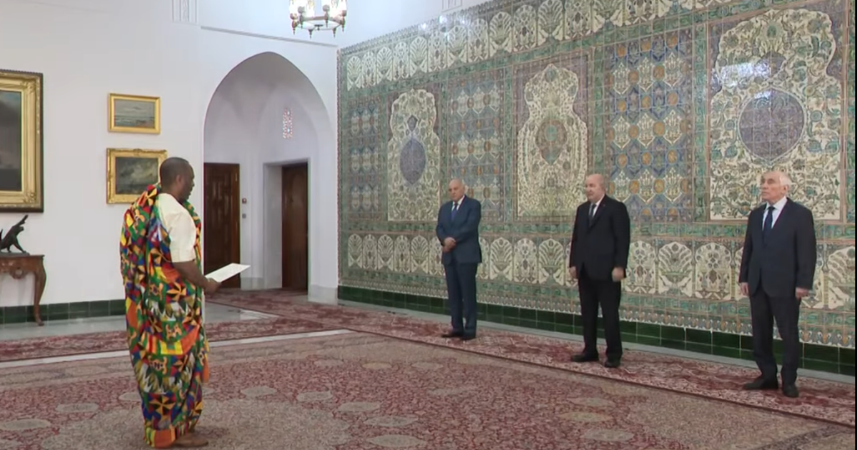 The Algerian President, Abdelamdjid Tebboune, received on Monday the credentials of His Excellency Edward Kwaku Cofie, Ambassador of the Republic of Ghana to Algeria.