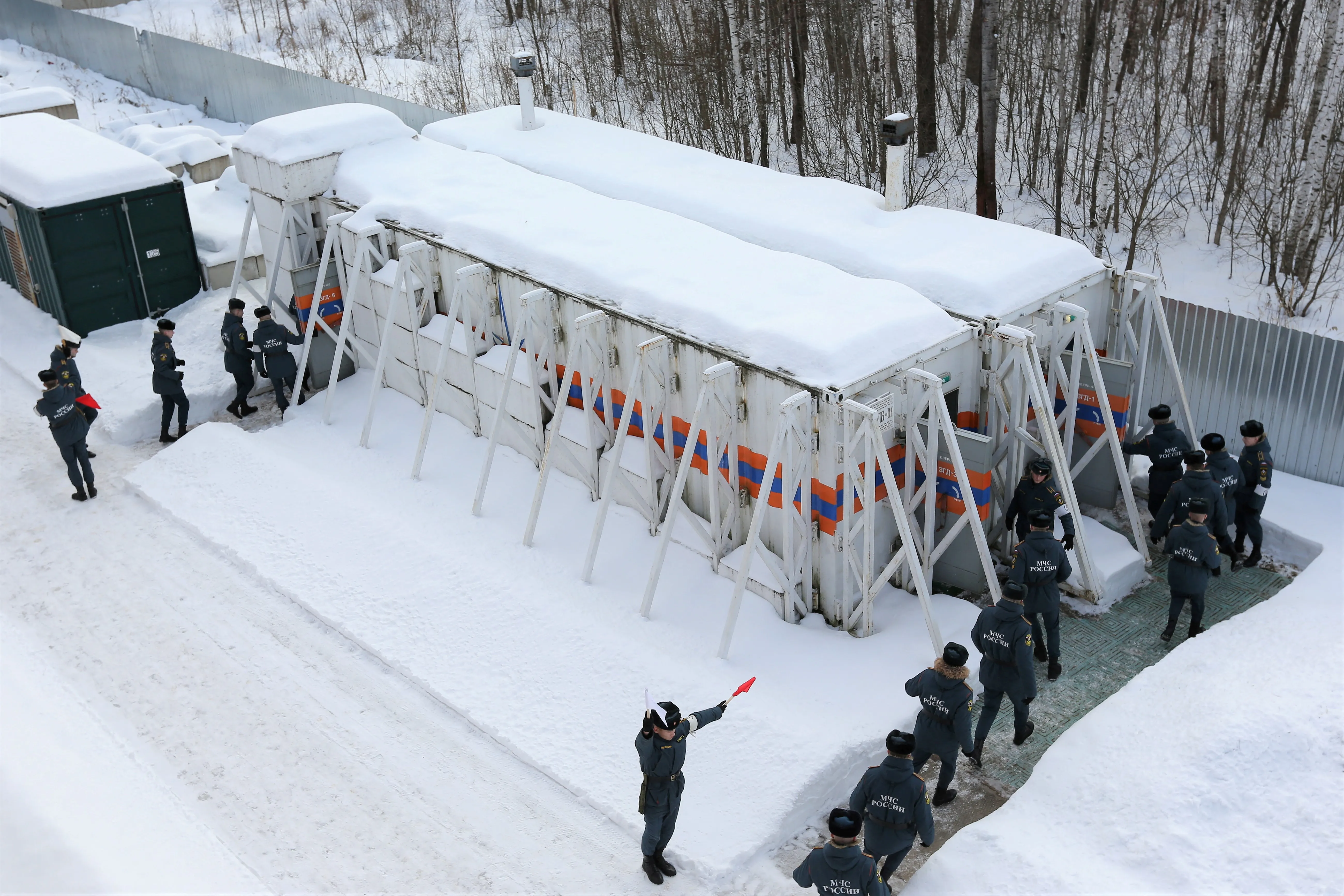 The “KUB-M” looks like a reinforced shipping container and consists of two modules – a room for 54 people and a technical block. More modules can be added if needed, the institute said.