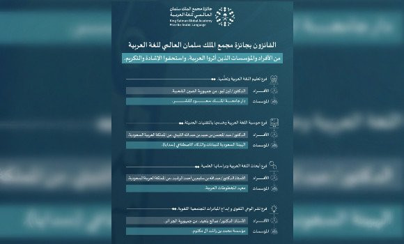 The award, which will be presented on November 24 in the Saudi capital Riyadh, is granted to individuals and institutions excelling in four areas: “teaching and learning of the Arabic language,” “Arabic language digitization through new technologies,” “scientific research and studies on the Arabic language,” as well as “linguistic awareness and creation of community-based language initiatives.”