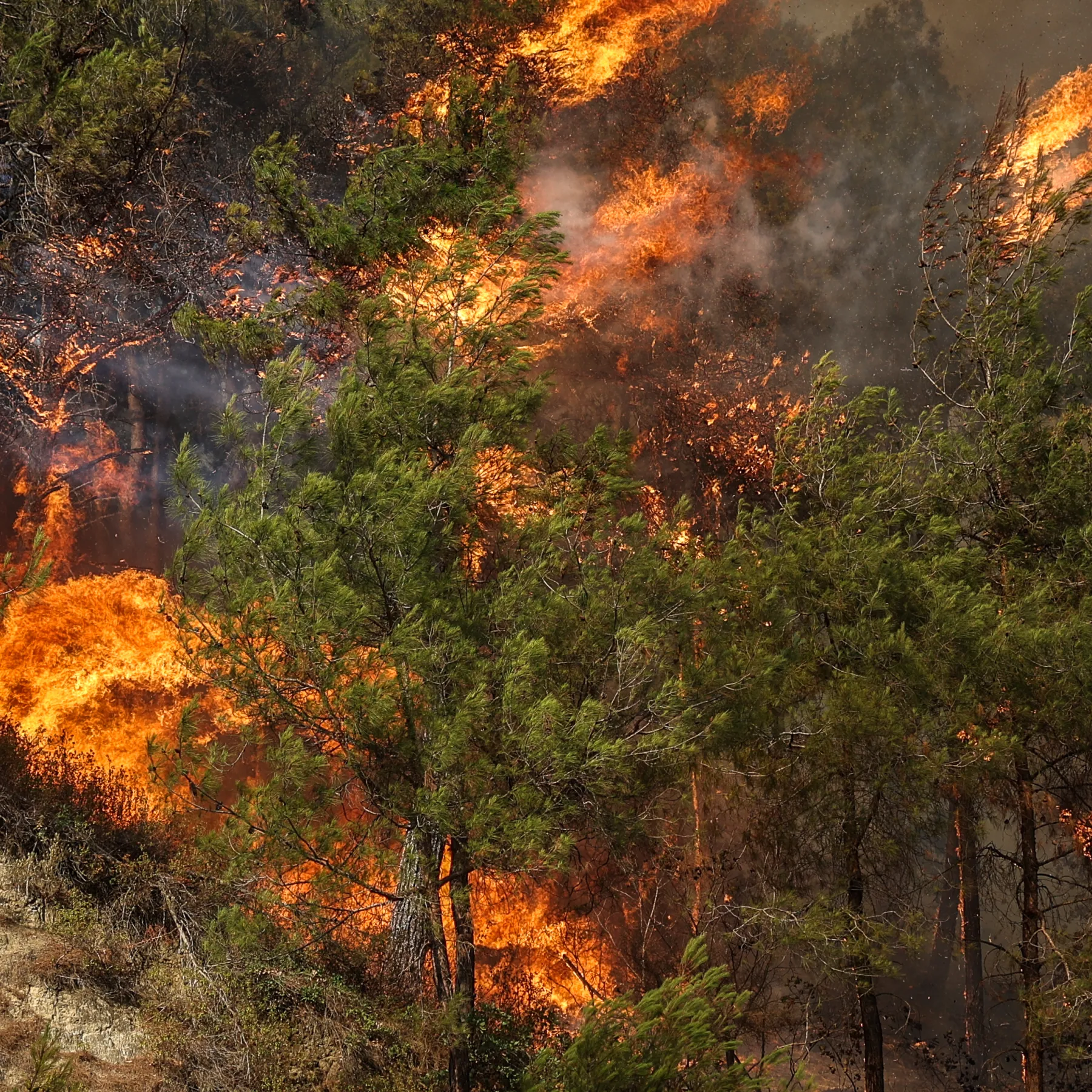 Swathes of forested area and farmland have burned and some villages evacuated as the fires raged including near the Turkish border.
