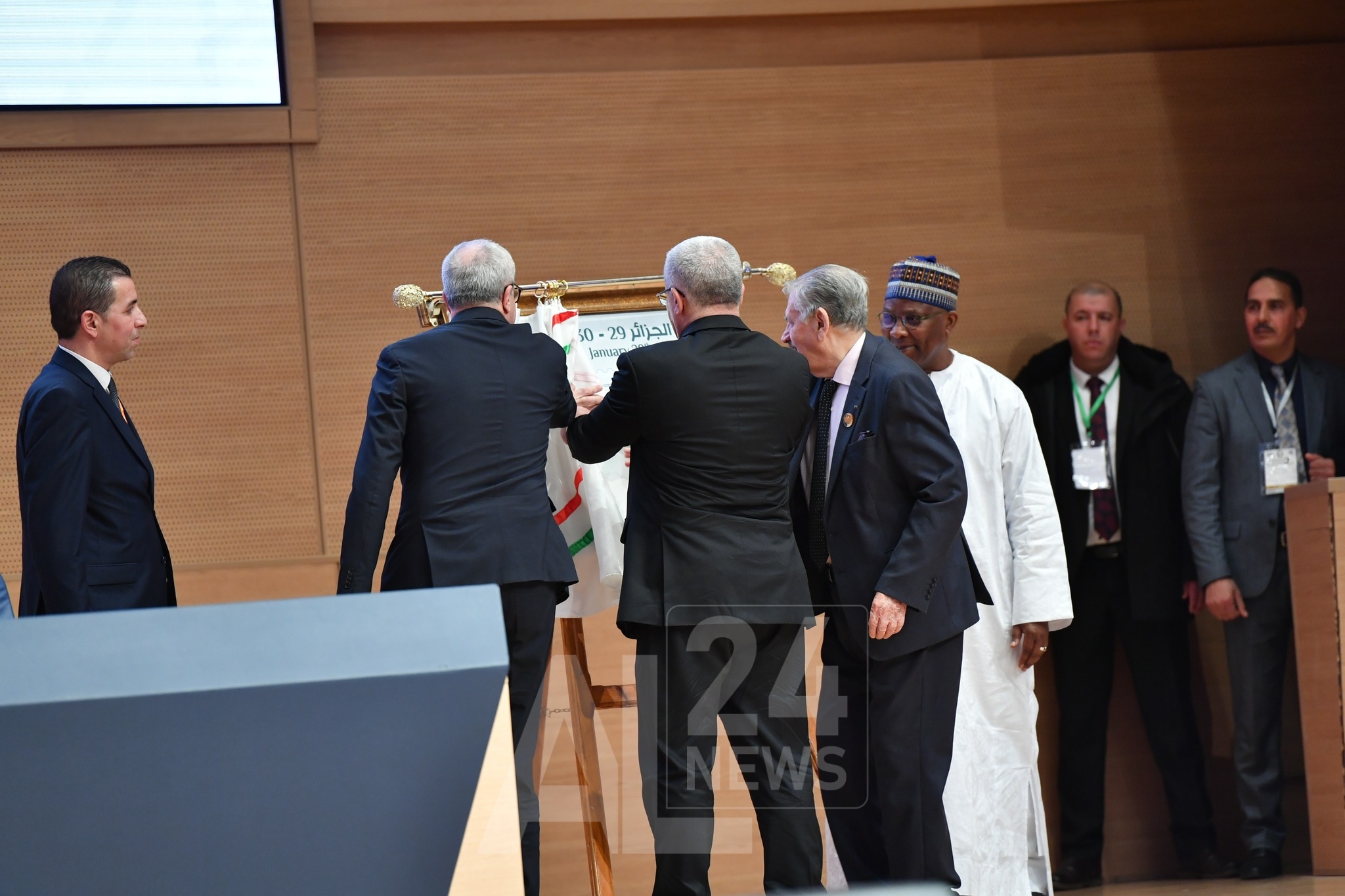La cérémonie de présentation de ce timbre-poste illustrant le slogan de cette session « le monde musulman et les enjeux de la modernisation et du développement », a été présidée les présidents du Conseil de la nation et de
