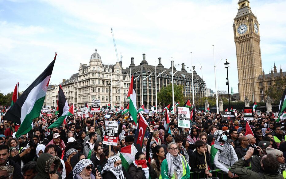 Près de 100.000 personnes ont marché samedi après-midi à Londres pour réclamer la fin des agressions sionistes contre les Palestiniens à Ghaza et en Cisjordanie occupée, qui ont fait au moins 7.814 martyrs palestiniens et