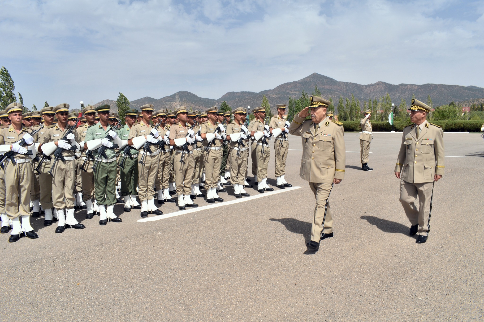 Les promotions de nouveaux diplômés de l’ESAB, sorties en présence, également, du wali de Batna, Mohamed Benmalek, en présence des autorités locales civiles et militaires. Il s’agit de la 4ème promotion de formation de base commune des officiers, de la 4ème de qualification militaire professionnelle de première classe (formation de formateurs), de la 28ème d’officiers d’application spécialisés dans les blindés, de la 30ème d’aptitude professionnelle militaire du 2ème degré, de la 39ème de certificat militaire professionnel du 2ème degré, de la 56ème d’aptitude professionnelle militaire du 1er degré et de la 64ème d’officiers de perfectionnement.