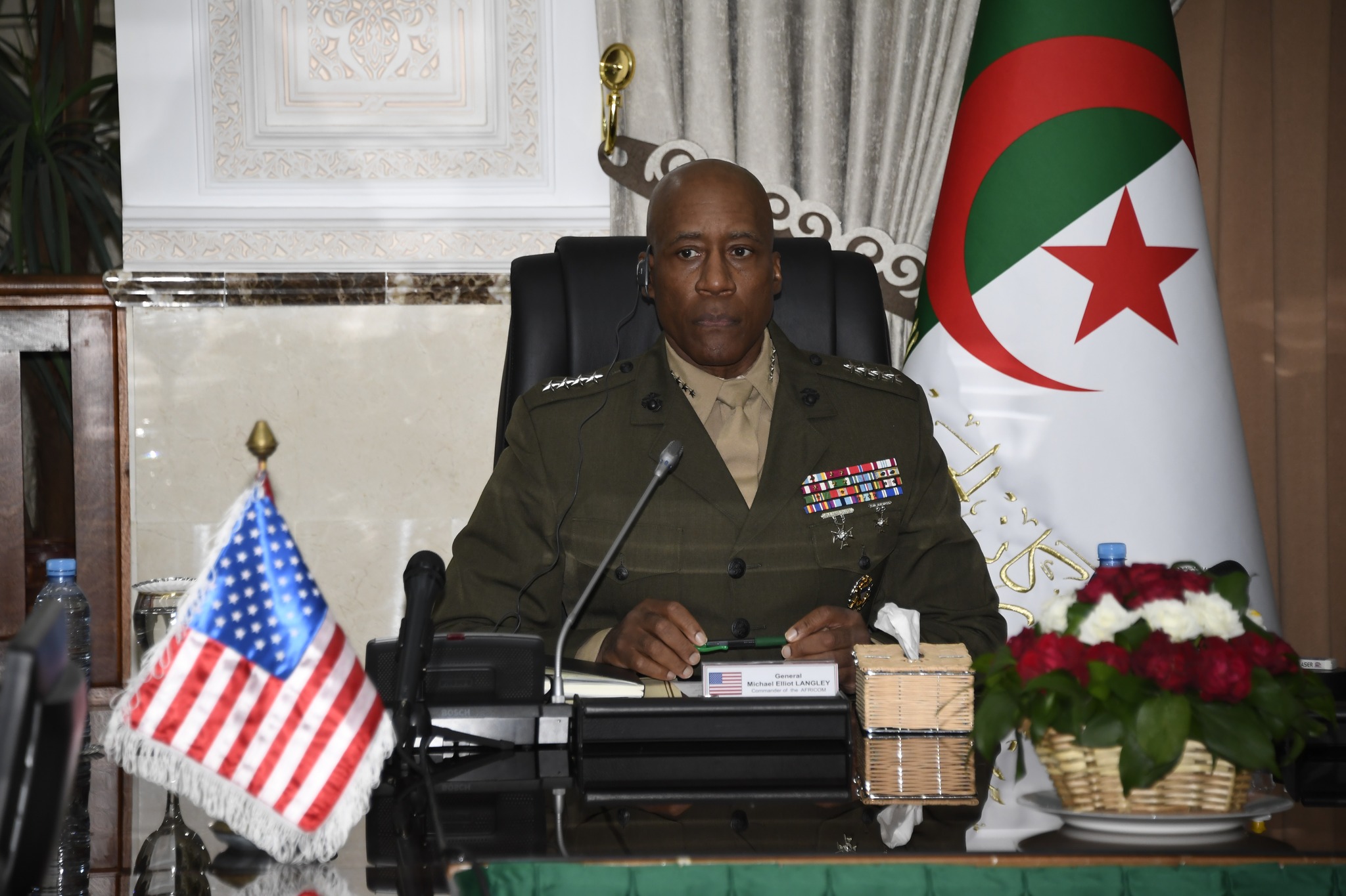 Pour sa part, le commandant de l’AFRICOM a exprimé, dans son allocution, son plaisir de visiter l’Algérie, ce qui lui a permis de discuter avec le Haut Commandement de l’Armée Nationale Populaire des différentes questions sécuritaires sur la scène internationale et régionale, conclut le communiqué.