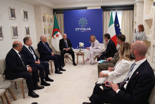 « La participation du président de la République, M. Abdelmadjid Tebboune, au sommet du G7, qui s’est tenu à Bari (Italie) et ayant traité des effets du changement climatique et du développement en Afrique, a été couronnée