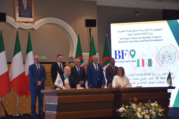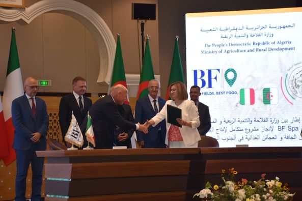 L’accord-cadre a été signé, au Centre international de conférences Abdelatif-Rahal (CIC, Alger), par la Directrice générale de l’investissement et du foncier agricoles au ministère, Souad Assaous, et le PDG de la société italienne BF, Federico Vecchioni, en présence des ministres de l’Agriculture et du Développement rural, Youcef Cherfa, des
